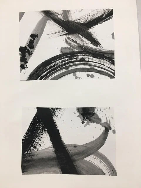 The following picture is of my students fearlessly painting with a long brush on a large piece of paper on the floor and then cutting